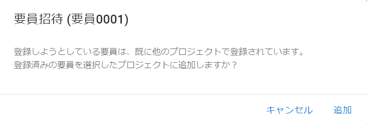 - 要員招待ダイアログの追加ボタンを押下すると、要員招待が行われます。