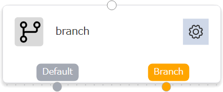 Branchハンドルは複数のノードと接続することができ、接続したノードの数だけ分岐が追加されます。 Branchハンドルと接続しているノードが存在する場合、ノードの設定ボタンから分岐条件を設定することができます。 Defaultハンドルと接続したノードは分岐条件のいずれにも該当しない場合の分岐先となります。