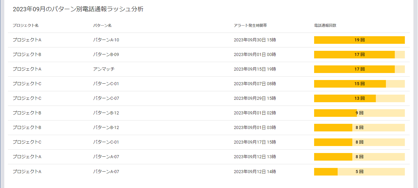 電話通報回数当該パターンがアラート発生時間帯で行った電話通報の回数