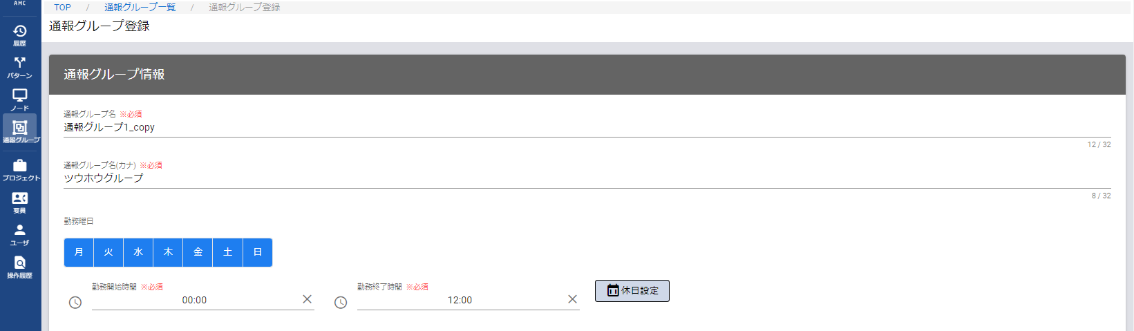 | 通報グループ名 | <複製元の通報グループ名>_copy |