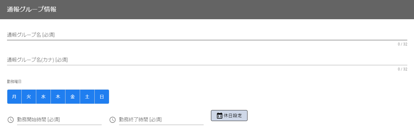 通報グループ個別の休日を指定できます。