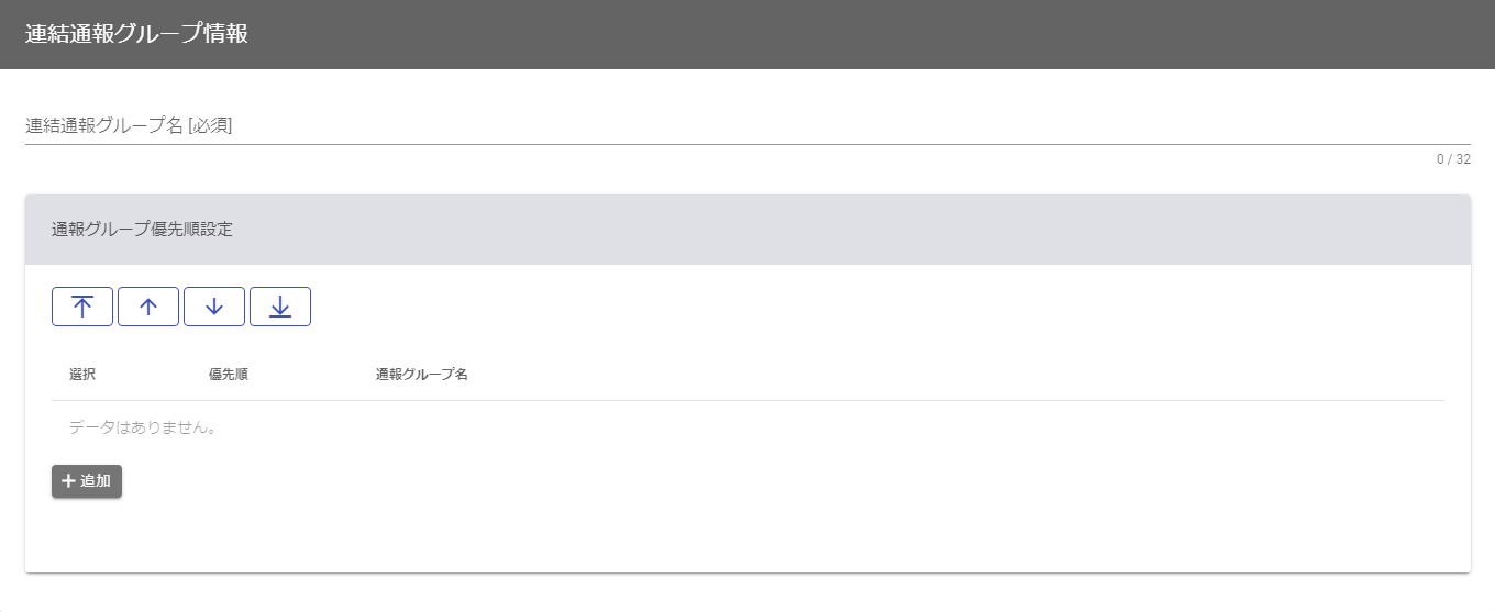 | 追加 | 連結通報グループに割り当てる通報グループを選択します。 | |