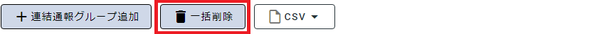 - 画面左のメニューバーから、「通報グループ」を選択し、更に「連結通報グループ」タブを選択して管理画面を開き、画面右上の「一括削除」ボタンをクリックします。