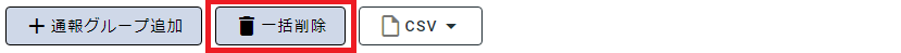 - 画面左のメニューバーから、「通報グループ」を選択して、管理画面を開き、画面右上の「一括削除」ボタンをクリックします。