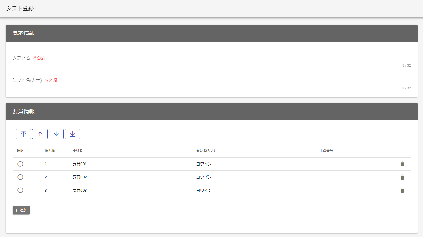 | 追加 | シフトに割り当てる要員を選択します。 | |