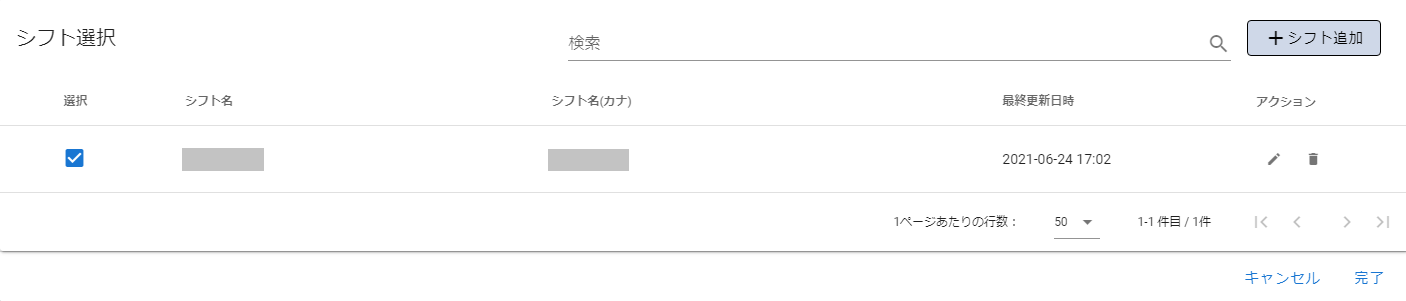 | 選択 | 登録済みのシフトから勤務時間内のシフトを選択します。 |