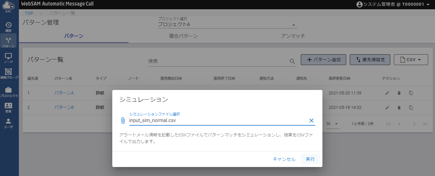 • [例] パターンで定義するnode_nameは、同じnode_nameを持つノード情報を参照します。パターンのインポートで、ノード情報が存在しない場合、エラーになります。