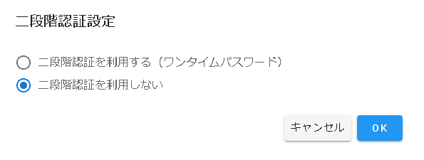 | 二段階認証を利用しない | 二段階認証を利用しない場合に選択します。 |