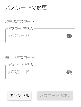 | 新しいパスワード | 変更後のパスワードを入力します。パスワード変更時には以下の条件を満たす必要があります。 文字種:英文字(大文字、小文字)、数字、記号を含む 文字数:8文字以上 大文字と小文字を両方に加え、数字、記号が必須となるため、文字種は最低4種類必要となります。 過去5回以内に使用したパスワードは再使用できません。 |