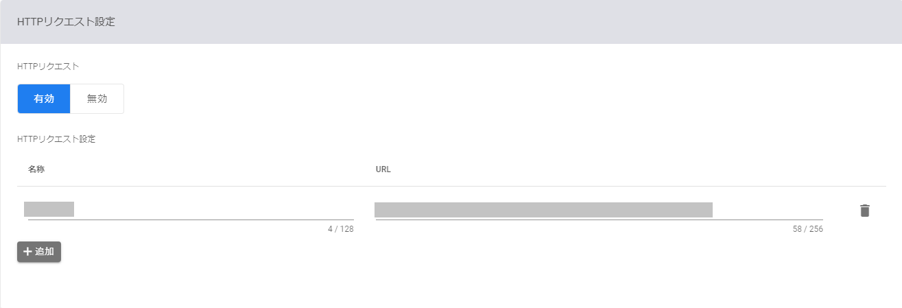 | HTTPリクエスト | HTTPリクエストの有効、無効を選択します。 | |