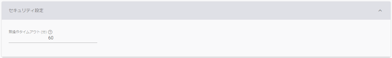 | 無操作タイムアウト(分) | 無操作状態が続いた場合に自動的にログアウトする時間(分)を指定します。デフォルトは60分です。 | 無操作タイムアウトはサインイン時点のセキュリティ設定で決定されるため、設定値を変更した場合は次回のサインインから反映されます。 |