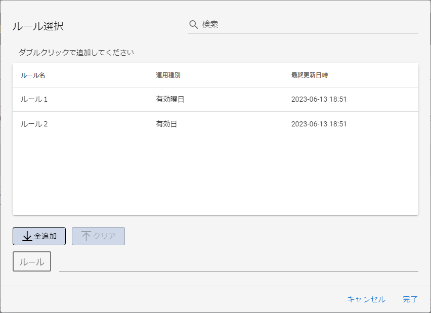 | ルール | 表中のルールからダブルクリックで選択したものが表示されます。 | |