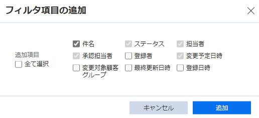追加したいフィルタ項目を選択し、 追加 をクリックします。