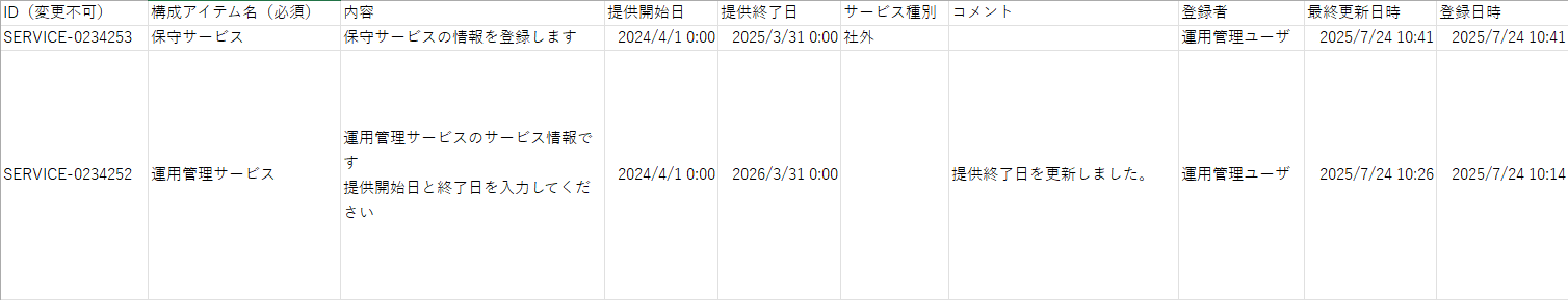 更新したい構成アイテムの情報をCSVに記載のうえ、構成アイテムを一括で更新してください。