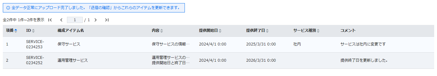 「更新」をクリックします。「更新完了 構成アイテムは正常に更新されました」とメッセージが表示されます。