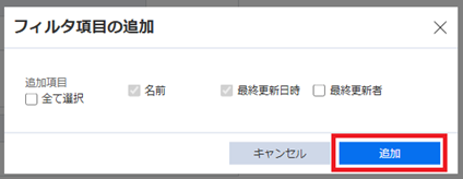 追加したいフィルタ項目を選択し「追加」をクリックします。