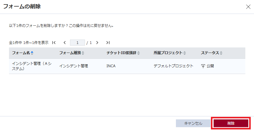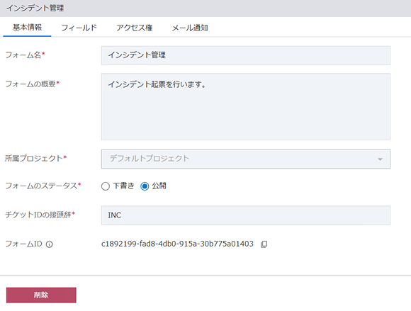 フォームの削除は、対象のフォーム上で起票されたチケットが存在しない場合に限り可能です