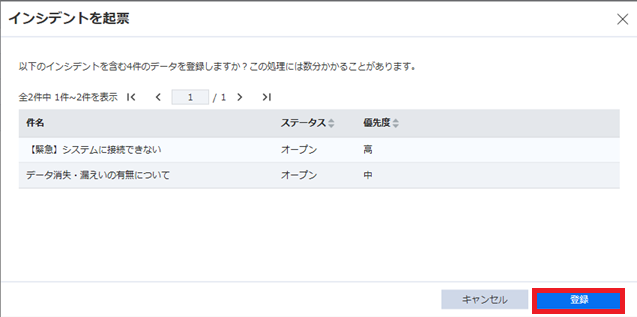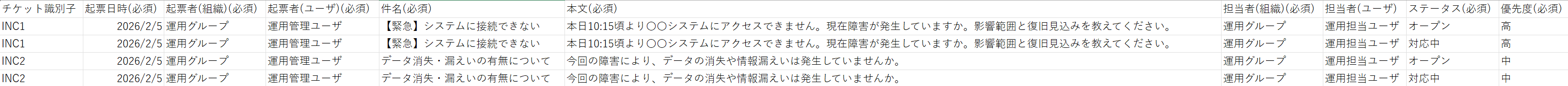 備考一度に起票できるインシデントは10,000件までです。10,000件を超過する場合はCSVファイルを分割ください