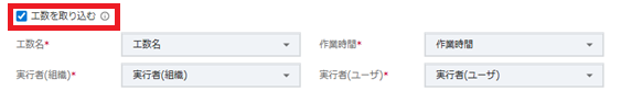 起票したチケットに対応履歴を取りこむにチェックをした上で工数を取り込むにチェックをし、CSVファイル内の各列とチケットのフィールドを対応付けます。