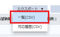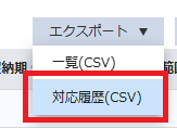 - 「エクスポート」ボタンを押してリストを展開し「対応履歴(CSV)」をクリックします。