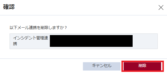 メール連携詳細(編集モード)画面で、 削除 をクリックします。