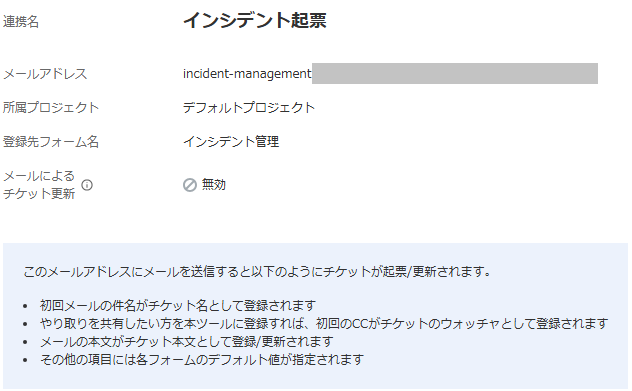 メール連携詳細(閲覧モード)画面で変更した内容が表示されることを確認します。