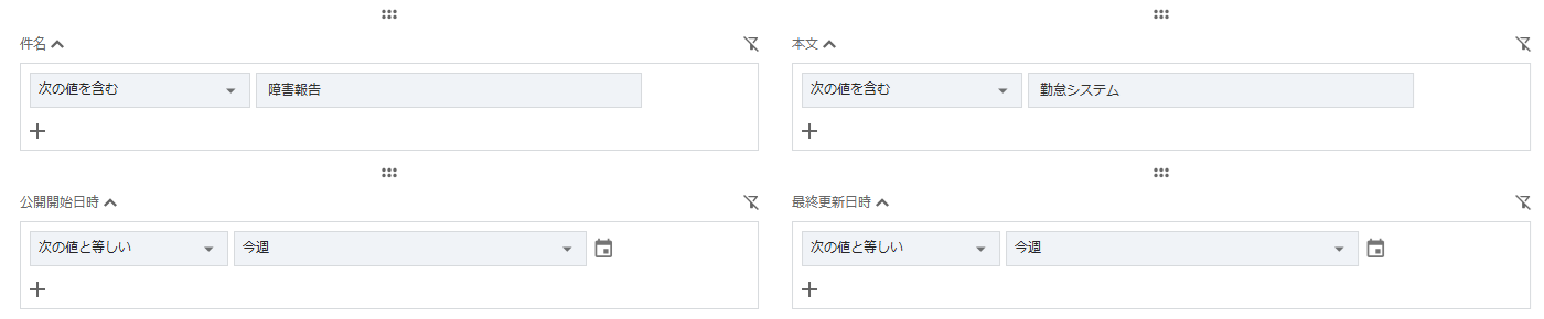 - 各フィルタ項目に対して、検索したい条件を指定します。