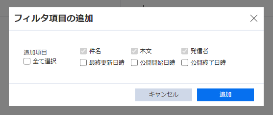 追加したいフィルタ項目を選択し、 追加 をクリックします。