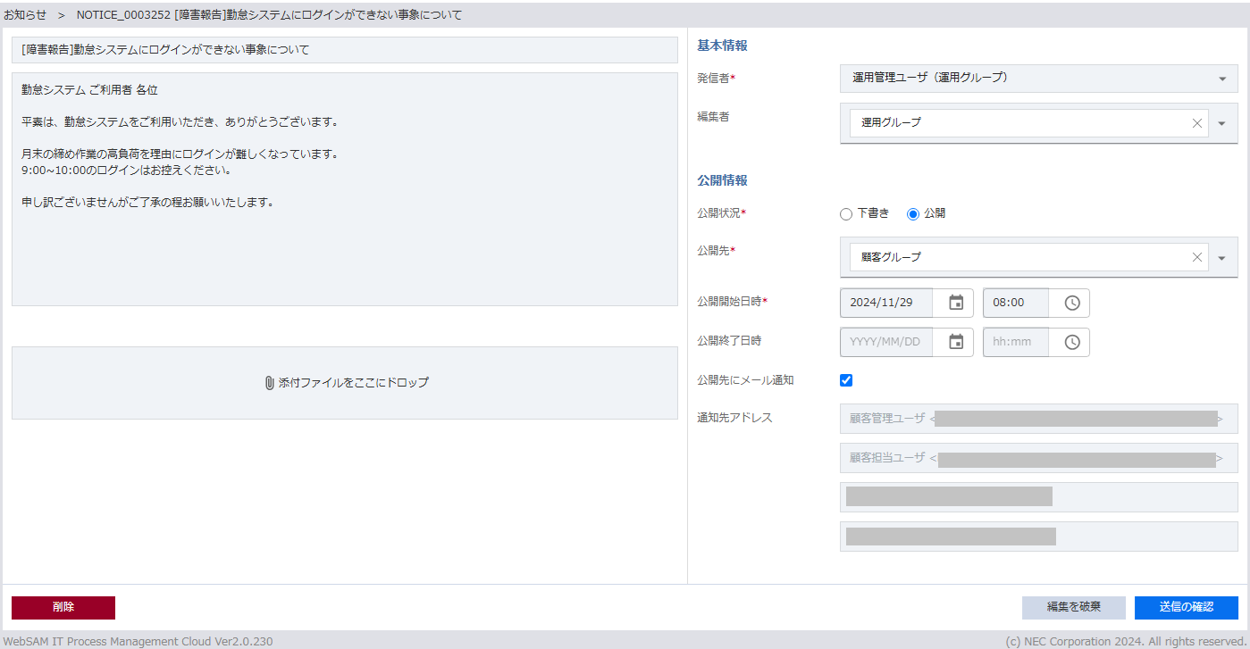 本機能は利用形態が「運用」のユーザのみがご利用いただけます。