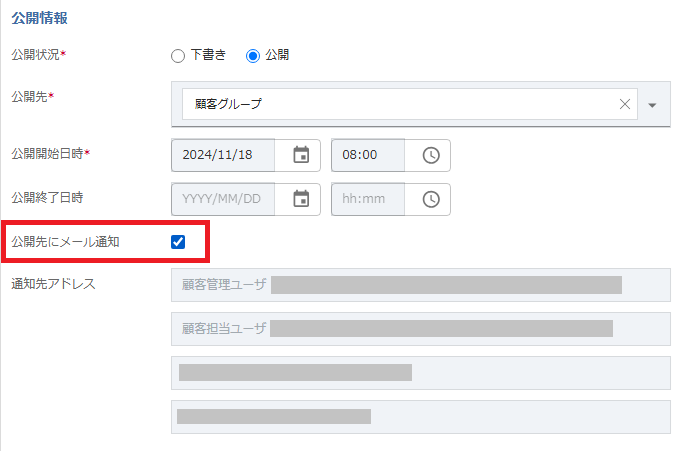 ※ 追加した公開先にのみメール通知が行われます