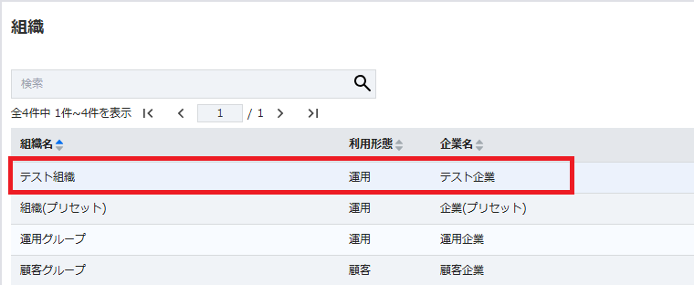 - 組織一覧画面で、更新対象の組織名をクリックします。