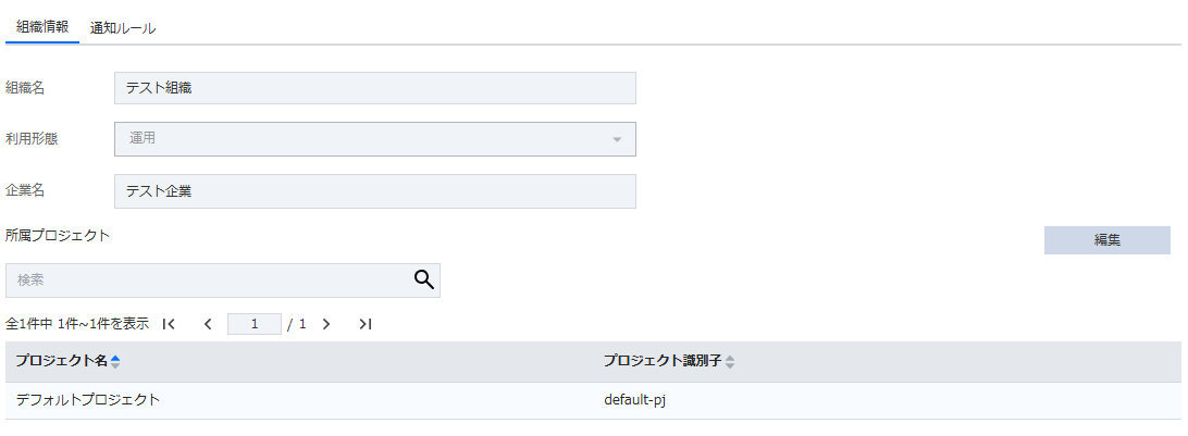 - 組織詳細(閲覧モード)画面で、 編集 をクリックします。