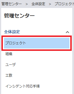 - プロジェクト管理者で管理センターを表示していた場合は、システム管理者画面に切り替えます。