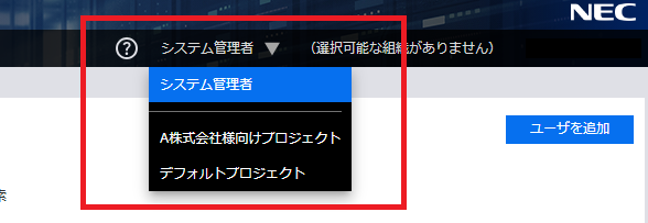 - プロジェクト管理者で管理センターを表示していた場合は、システム管理者画面に切り替えます。