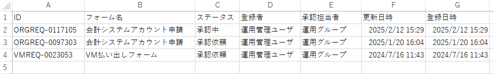 * リクエスト一覧画面に表示されているすべての列がエクスポートされます