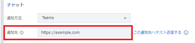 手順5-xiiでメモしたURLを「通知先」に設定します。