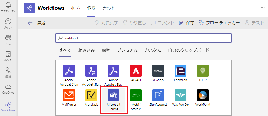 「Microsoft Teams Webhook」をクリックします