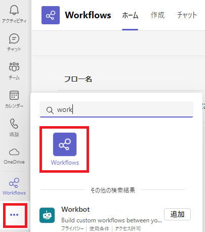 Teamsクライアントから Workflows を開きます