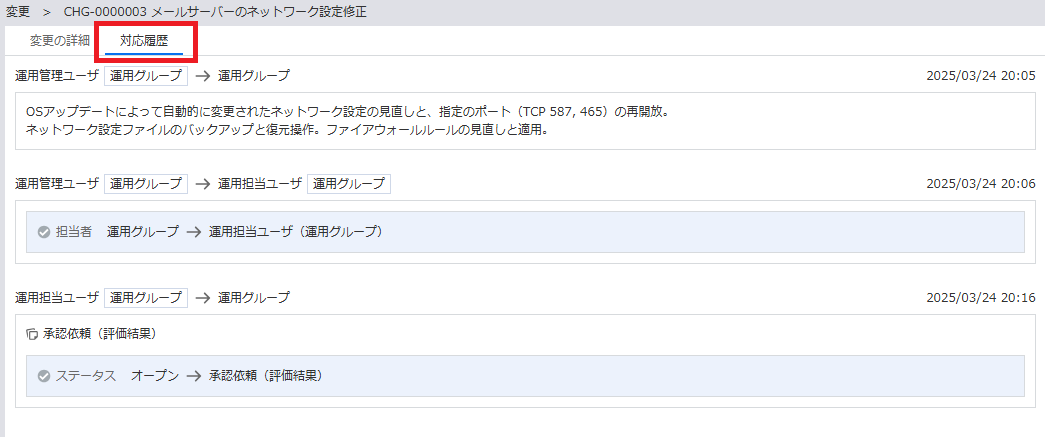 - ダッシュボードもしくは変更一覧画面から対象の変更にアクセスします。