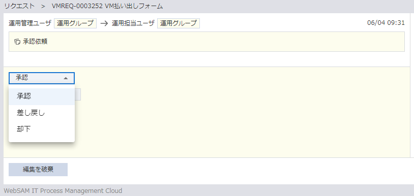 - メール通知のリンクもしくは、ダッシュボード画面/リクエスト一覧画面から対象リクエストにアクセスします。
