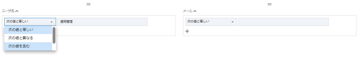 各フィルタ項目に対して、 検索したい任意の値と条件をリストボックスから選択します。