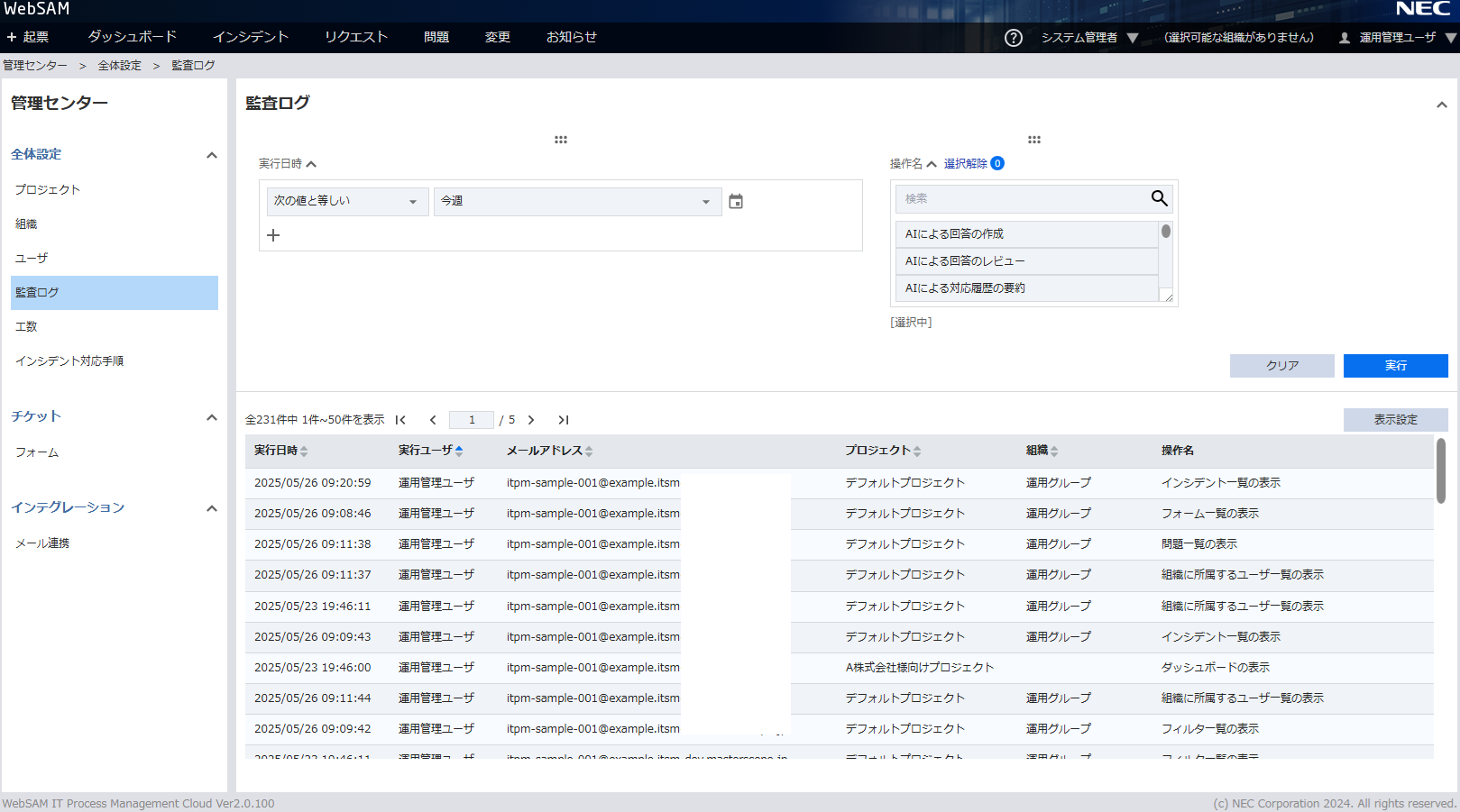例えば、チケットの起票や更新、管理センター上でユーザが行った操作を監査ログとして参照できるようになりました。