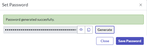 Set Password画面で[Generate]をクリックしてパスワードを生成し、[Save Password]をクリックして保存します。